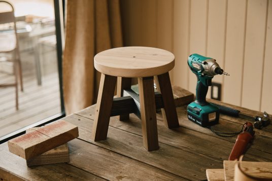 木の香りにふれる、かんたんDIY。ビスを留めるだけで、無垢材の丸椅子が完成!